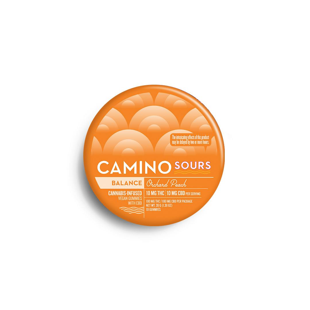 Orchard Peach Sour Gummies by Camino 1:1 THC|CBD | Edibles | 100mg (10mg THC x 10)
